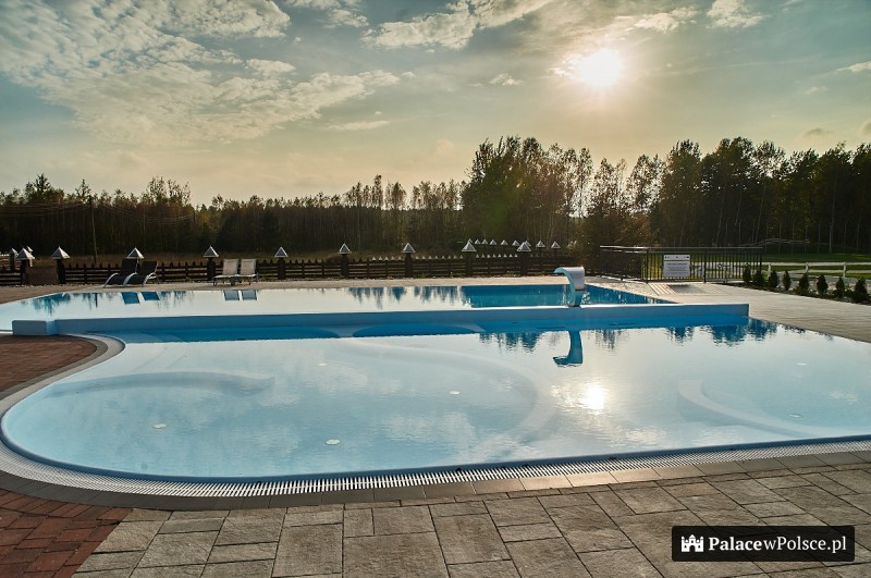 – basen zewnętrzny (powierzchnia lustra wody; 15 m x 15m) , -wraz z częścią SPA (masaże wodne) oraz z brodzikiem dla dzieci; na łącznej powierzchni 2000 m2,